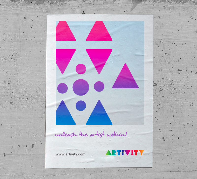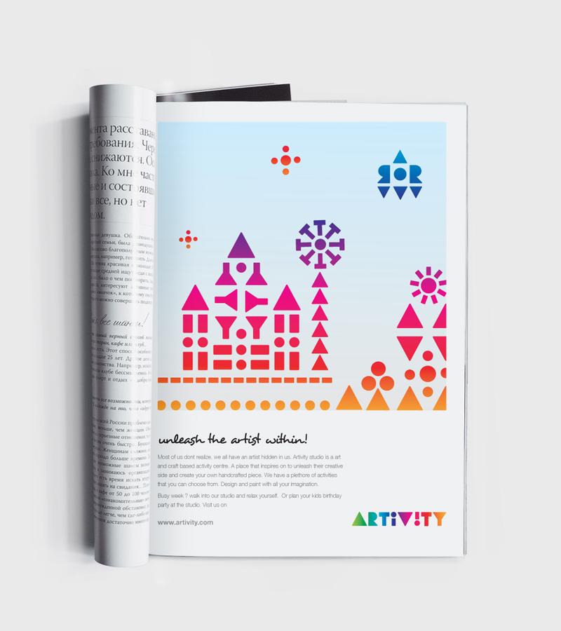 The concept of this logo type is derived from the thought that art and craft can finally be decoded to organic or geometrical shapes. The studio space of Artivity provides lots of creative opportunity. The logotype conveys this idea of dynamism and creativity through its color and the different shapes and structures it can form into.