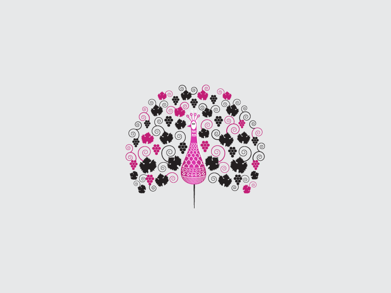 Illustration of a peacock, the Indian national bird, with its feathers crafted along with grape vine leaves and grapes provides immediate recall to Indian routes/origin which is achieved through the choice of the illustration style. Variants have been differentiated using distinct colors.