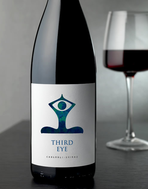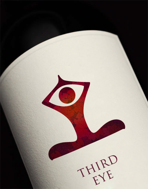 Another option for the same brief. Here we decided to call it third eye because it connects with Indian mythology and refers to the gate that leads to inner realms and spaces of higher consciousness. A man in yoga posture and his head and hands forms an eye which recalls the brand name ‘Third Eye’. Texture of vine leaves enhances the look and feel. Different colors were used on each variant.